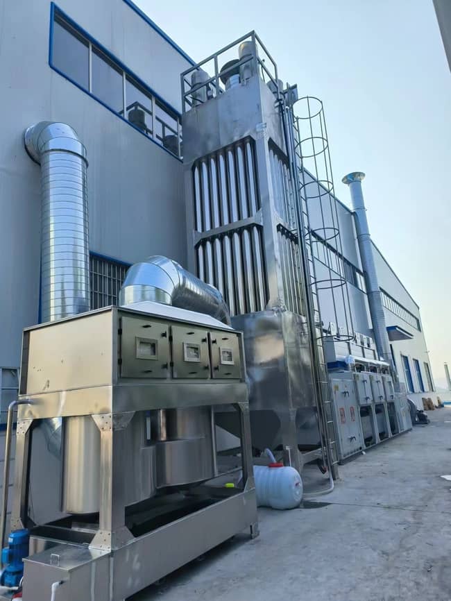 2套不銹鋼氣旋塔+干燥過濾箱+沸石分子篩催化燃燒設(shè)備!順利安裝調(diào)試完畢!